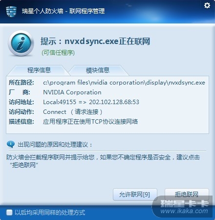这个图是可信任程序。瑞星个人防火墙V16对可信任程序,默认情况是允许联网的,对未知程序,默认是拒绝联网的。