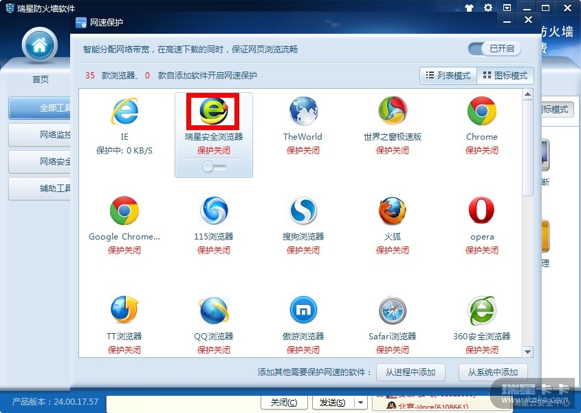 在使用个人防火墙的时候,发现了一个问题。修改一下瑞星浏览器图标。(如图所示)