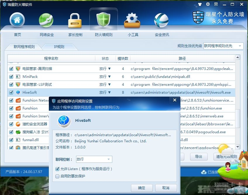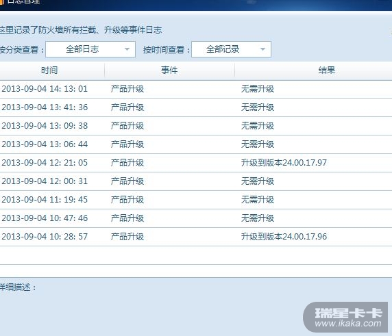 结果:瑞星弹窗提示 ,我点击 允许后 ;发现 日志中没有 联网程序的 记录