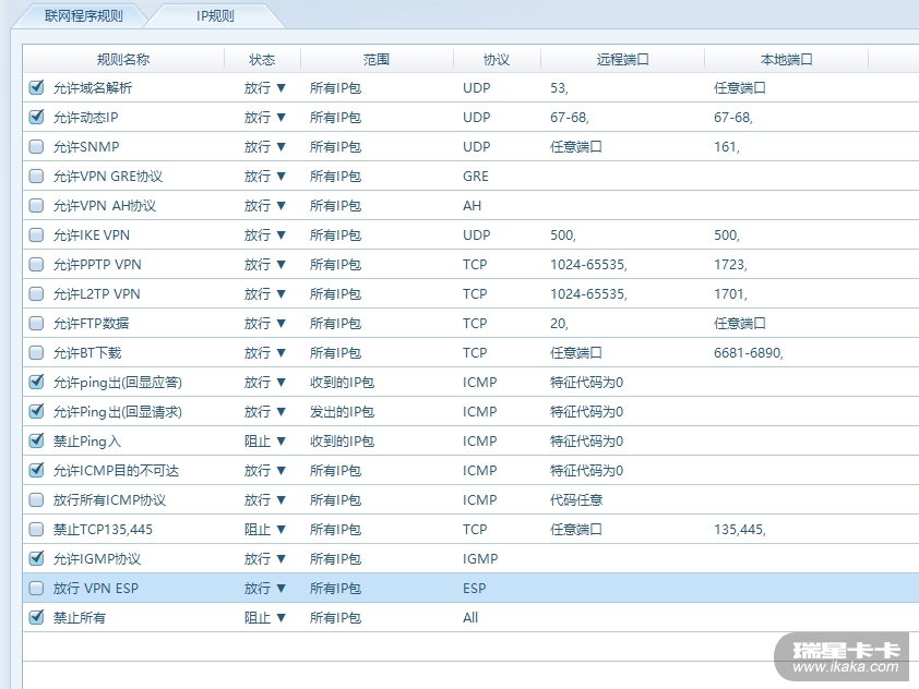 瑞星防火墙规则设置