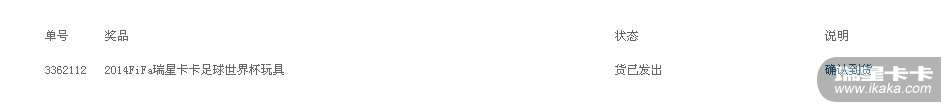 7月4日世界杯小组赛竞猜所得奖品!很早就显示一发货,但是至今没有收到!请帮忙查询!谢谢!
