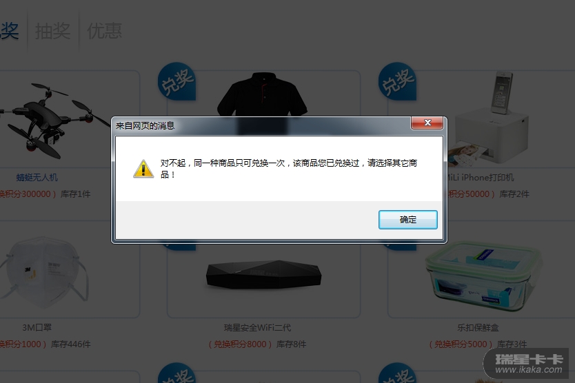 如题,几个月前兑换过一个乐扣玻璃碗,现在又想兑换了,但是系统提示已经兑换过,不能兑换了,请问,一个帐号只能兑换一次?还是间隔多久,又能兑换了?