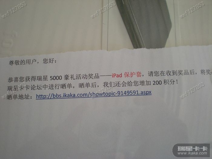 凡在瑞星5000万积分活动中收到实物奖品的用户,在本版中进行详细晒单者,经过瑞星核实可额外获得活动积分200分。