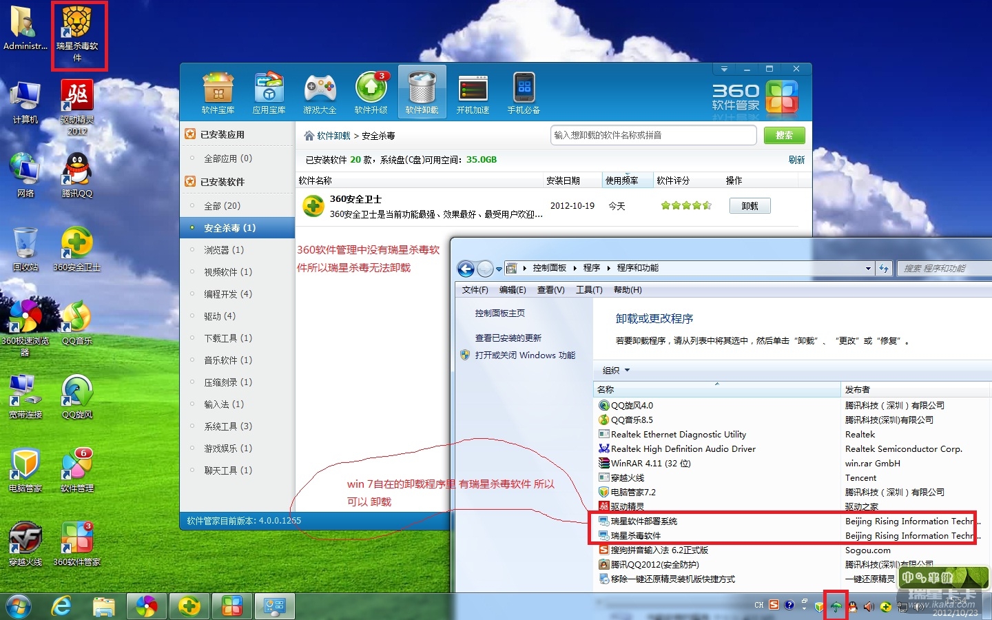 可是360软件管家中根本没有瑞星杀毒软件 所以许多用户就会说瑞星杀毒不能卸载 看下图