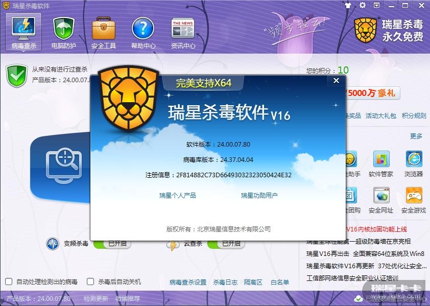 瑞星V16在64位Windows7上面的使用问题,一个BUG。