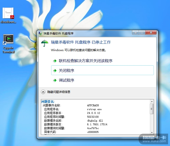 最新版本已解决,请把瑞星升级至最新版本观察。