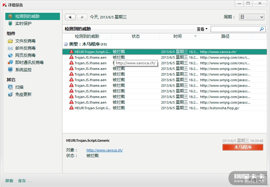 2013-6-4 20:13 [Web Protection] 发现恶意软件