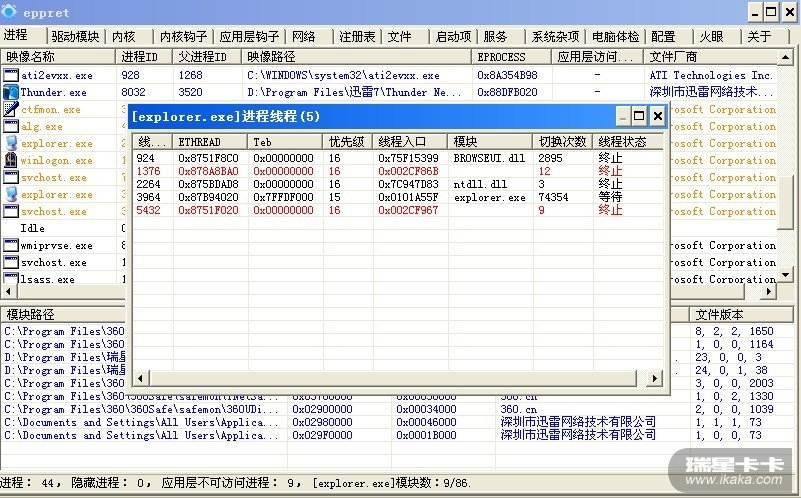 11.explorer.exe进程正常,但是检查线程发现红色线程,