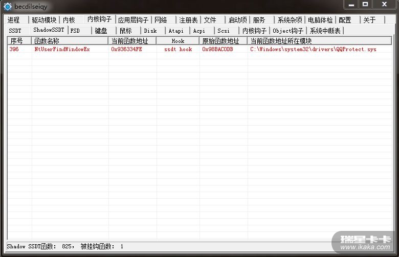 结果:瑞星的ssdt 和 shadown 挂钩 都完蛋了,没有自动挂上,QQ管家的挂钩却没有事