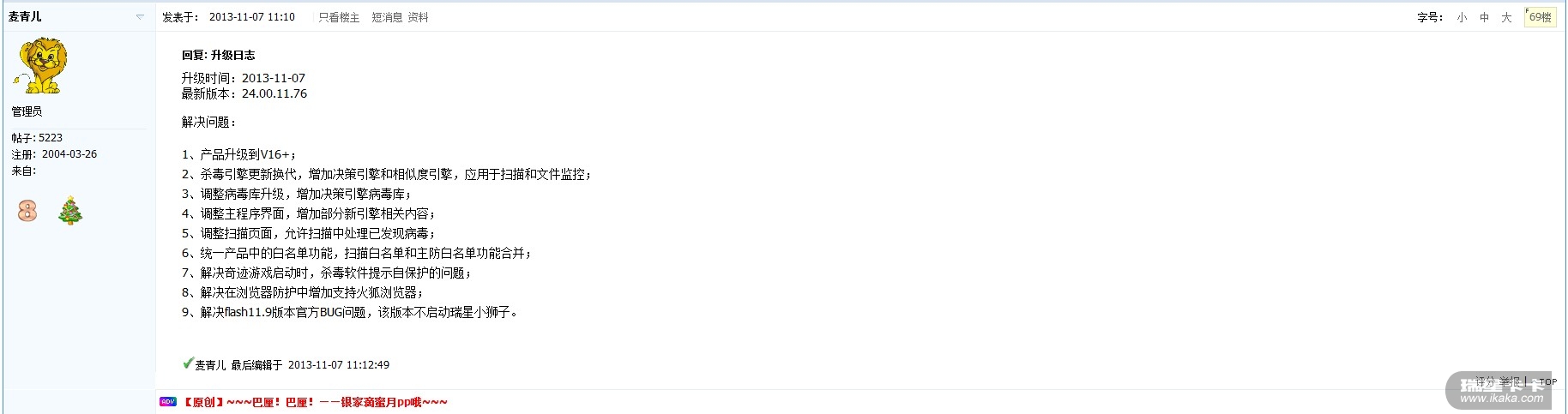 在编写瑞星【功能篇】时,发现了一处“已解决”的问题,启动程序时显示小狮子?如下:(如图所示)