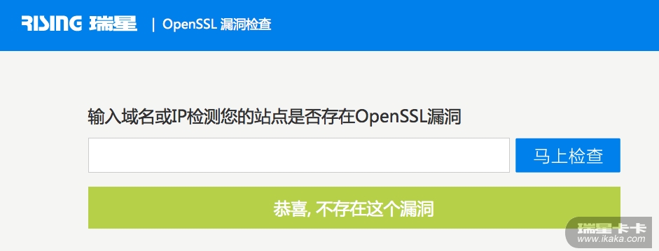 http://loudong.rising.com.cn/openssl/),广大站长及网站管理员只需输入网站域名,即可进行自动分析检测,一旦发现漏洞可尽快修补。