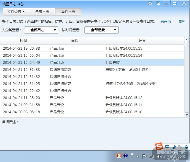 查看瑞星日志时,发现了“升级失败”的字样,是不是改变了一些细节还是瑞星BUG?