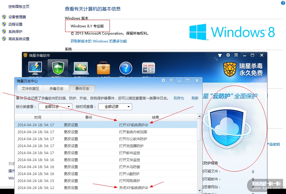 楼主做什么操作出现日志中显示关闭/打开XP系统保护伞的?