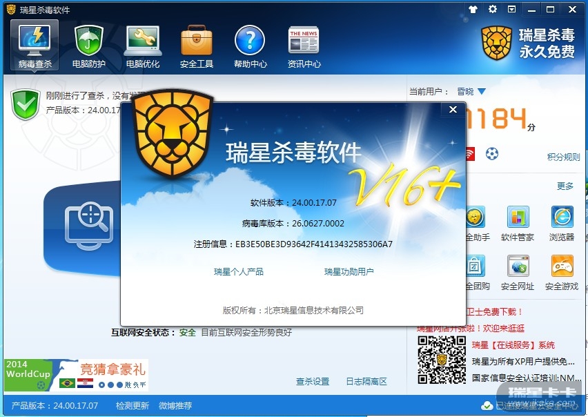 瑞星杀毒软件V16+