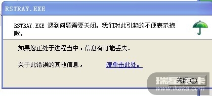 最近一段时间都会弹这个RSTRAY.exe遇到错误需要关闭.点关闭之后,右下角的伞没了.