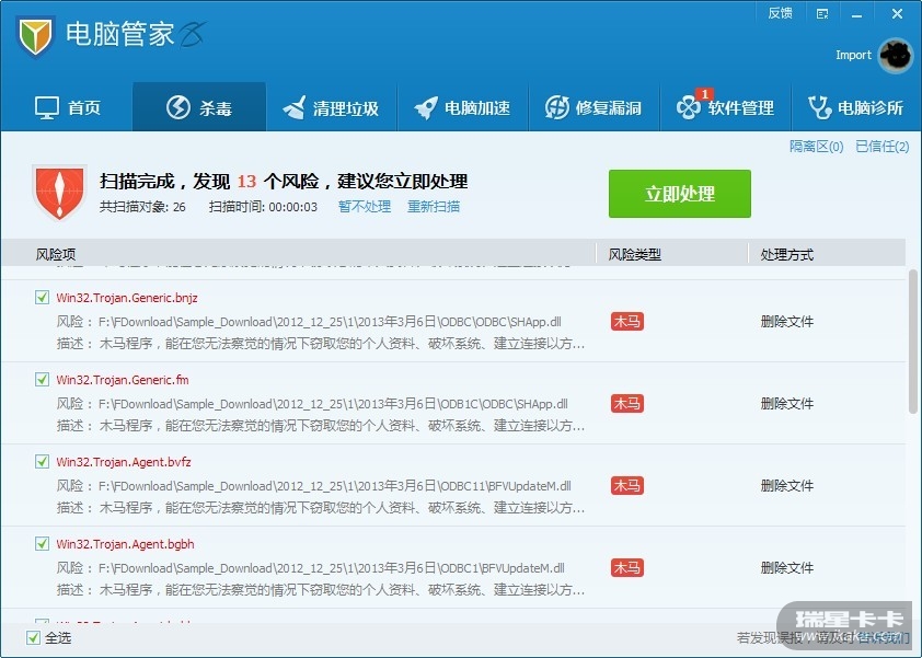 瑞星2009版查杀引擎测试