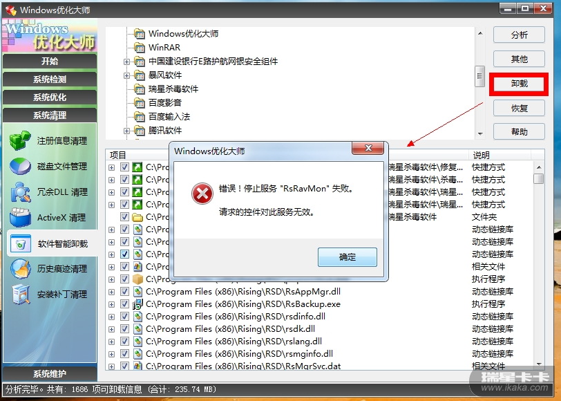 瑞星软件无法卸载---无法覆盖安装还总是自我保护系统--无法删除。很是不爽!想重装系统了!典型流氓软件啊 求救啊!!!怎么卸了这东西。
