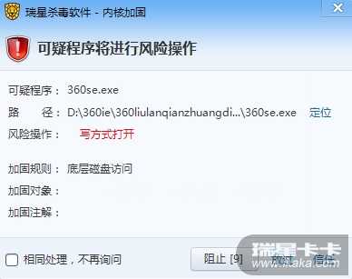本人Pc前几日装系统,新装的是瑞星杀毒软件V16+,瑞星个人防火墙,以及360安全卫士,今天开机总是提示“可疑程序进行风险操作”,涉及到搜狗输入法,360safe.exe等等,不知道为什么,系统加固我设置是的高级,但不是今天才开始设为高级的,以前为什么没提示“可疑程序进行风险操作”????