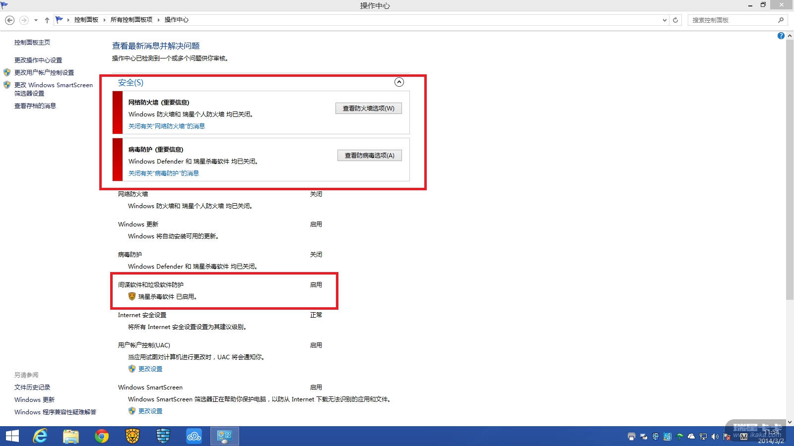 [疑似bug] 小岛测224——瑞星W8.1安全中心未注册