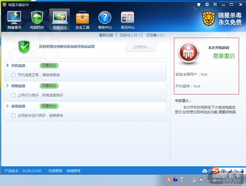 在做任务的时候,出现了电脑优化的问题。(如图所示)