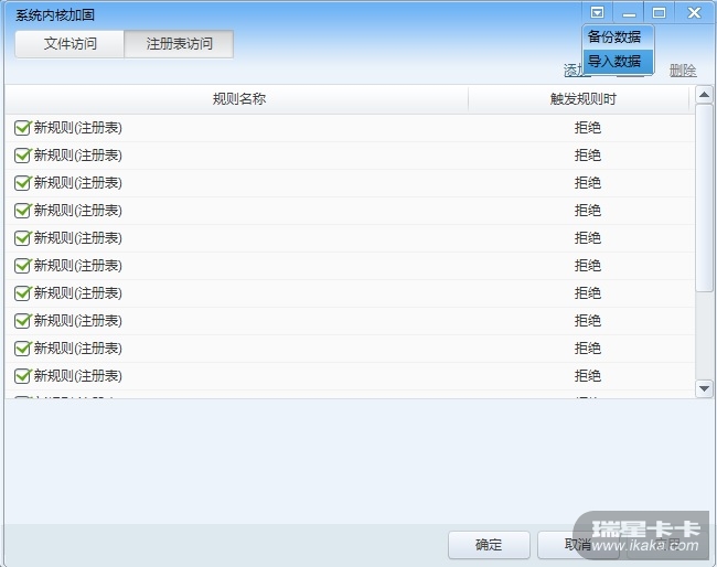 刚才在Win 8.1 64BIT 专业版下发现瑞星V16+版本中,系统内核加固中是有备份和导入功能的,