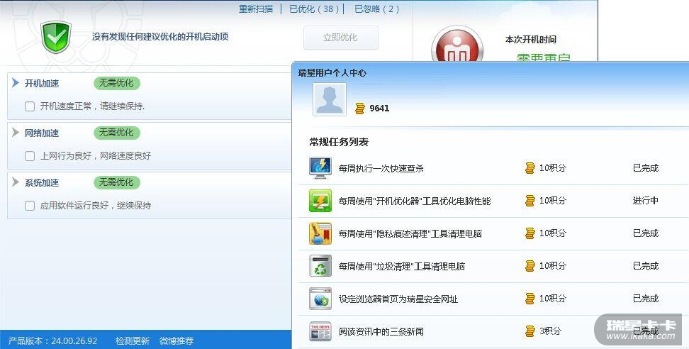 点图一“立即完成”,运行后还是“进行中”,关掉瑞星,重新打开,又回到图一,分没加。