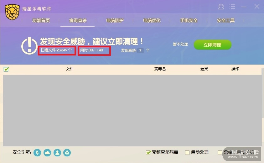 对一个10G左右的包含多种文件的目录进行完整查杀,同时为避免智能标记等影响我取得不是第一查杀结果,而是第三次查杀的结果。