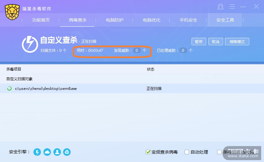 并且 右键自定义扫描 这个,也是引擎不动,并且无法结束 扫描 ,关闭不了!!!