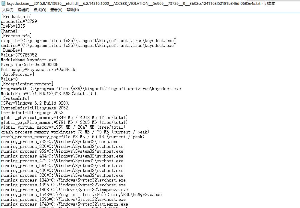 瑞星还要 人工到 安装目录下 ,又是 巴拉 升级日志 ,又是 查找 dmp 文件 , 哎 ,