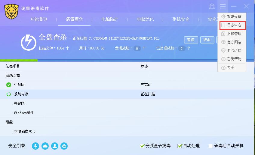 d、 开启所有防御,,,----------------------》全盘杀毒