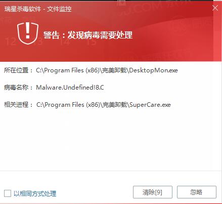 也就是 瑞星直接删除了 ,不是 文件监控报警的 模式 ,没有文件监控弹窗!!!