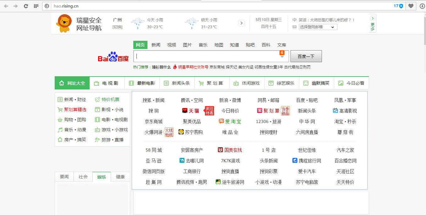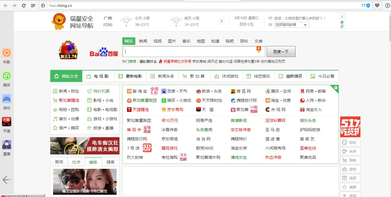 建议把黄金位置上的杂乱广告都改成各大门户网站.比如网易、搜狐、新浪、微博、微信等等等(最好是跟他们交换链接或者是推广链接)。将游戏之类的小广告,插在项目中间,不显眼的位置(偶尔可以突出几个游戏,但是建议是瑞星运营的游戏。)
