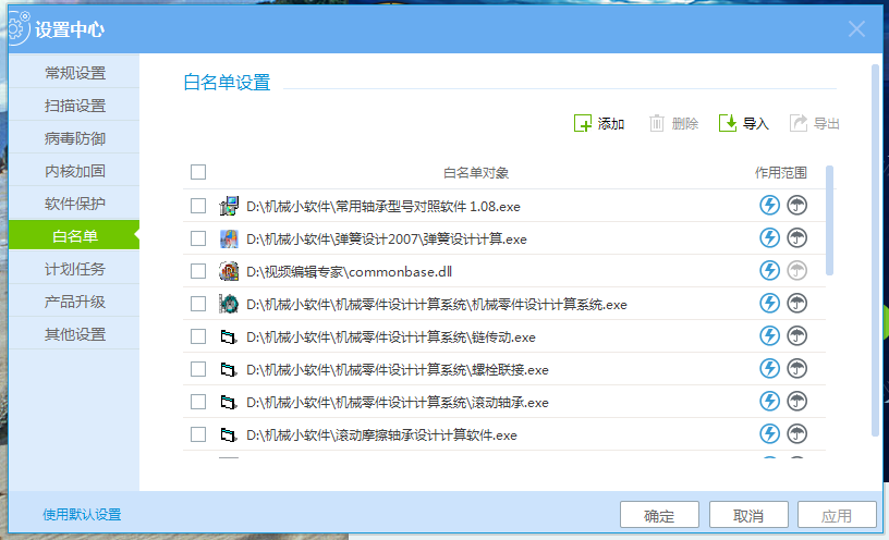 第二是防护白名单,点蓝之后防护功能就不会再提示它。