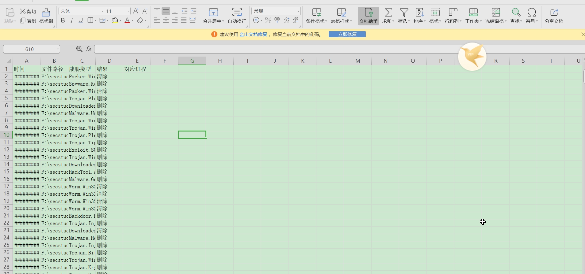[疑似bug] v17的杀毒日志导出的文件无法用ms office 2016正常打开