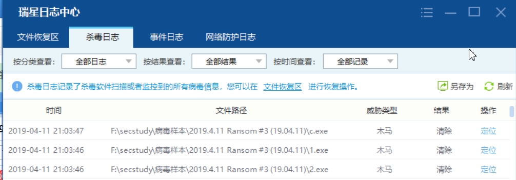 一个压缩包里三个病毒,解压后文件监控只显示清除一个,实际上已经全删了。