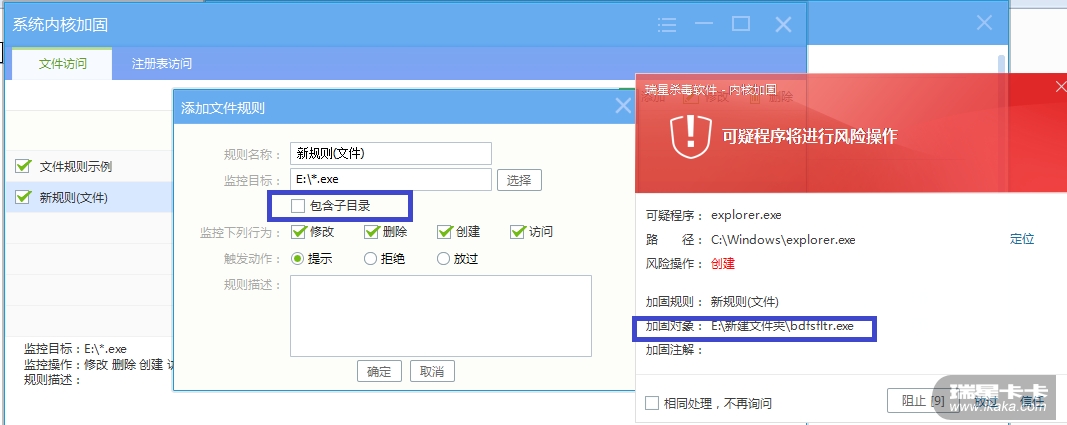 规则不勾选子目录,可是依旧拦截子目录文件操作