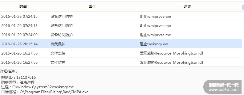 楼主是做了什么操作后瑞星自我保护提示的?
