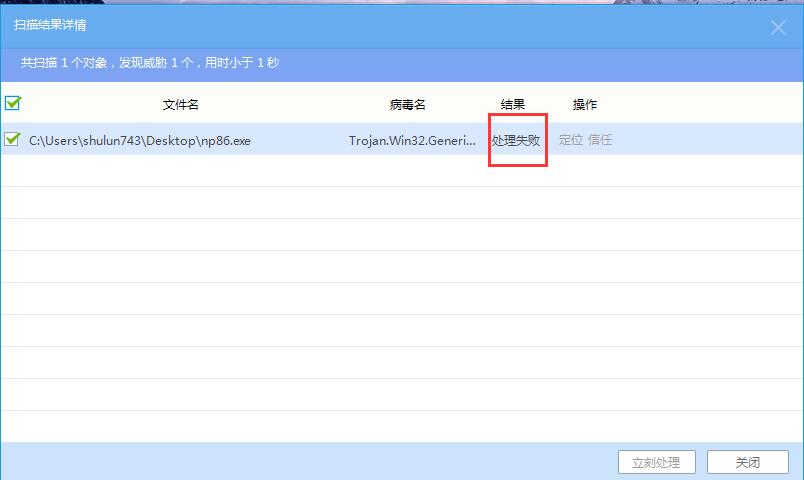 系统:win7-32操作:a、文件监控 默认b、系统加固 设置为 最高c、双击运行病毒结果:1、系统加固 和 行为 都没有动作!!!2、处理失败!!!