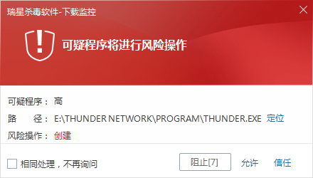 打开迅雷时有时会弹出 用迅雷下东西时偶尔也会弹出 迅雷版本7.9.43.5054 瑞星版本V17 24.17.00.83病毒库版本:28.0612.0003 系统 7 64