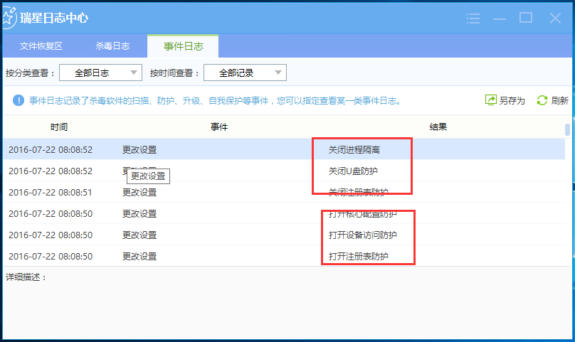 3、为何 日志中没有 记录  瑞星的 对 推广拦截的日志 ??