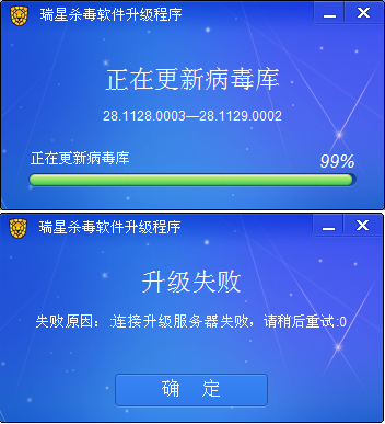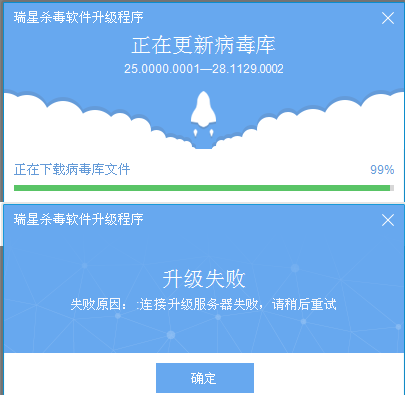 都是在下载完成后更新病毒库时失败的!看来不止我一个人忙乎了~