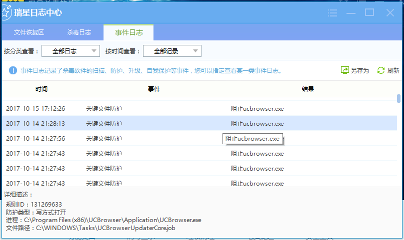 触发瑞星的关键文件保护规则了,影响UC使用吗?