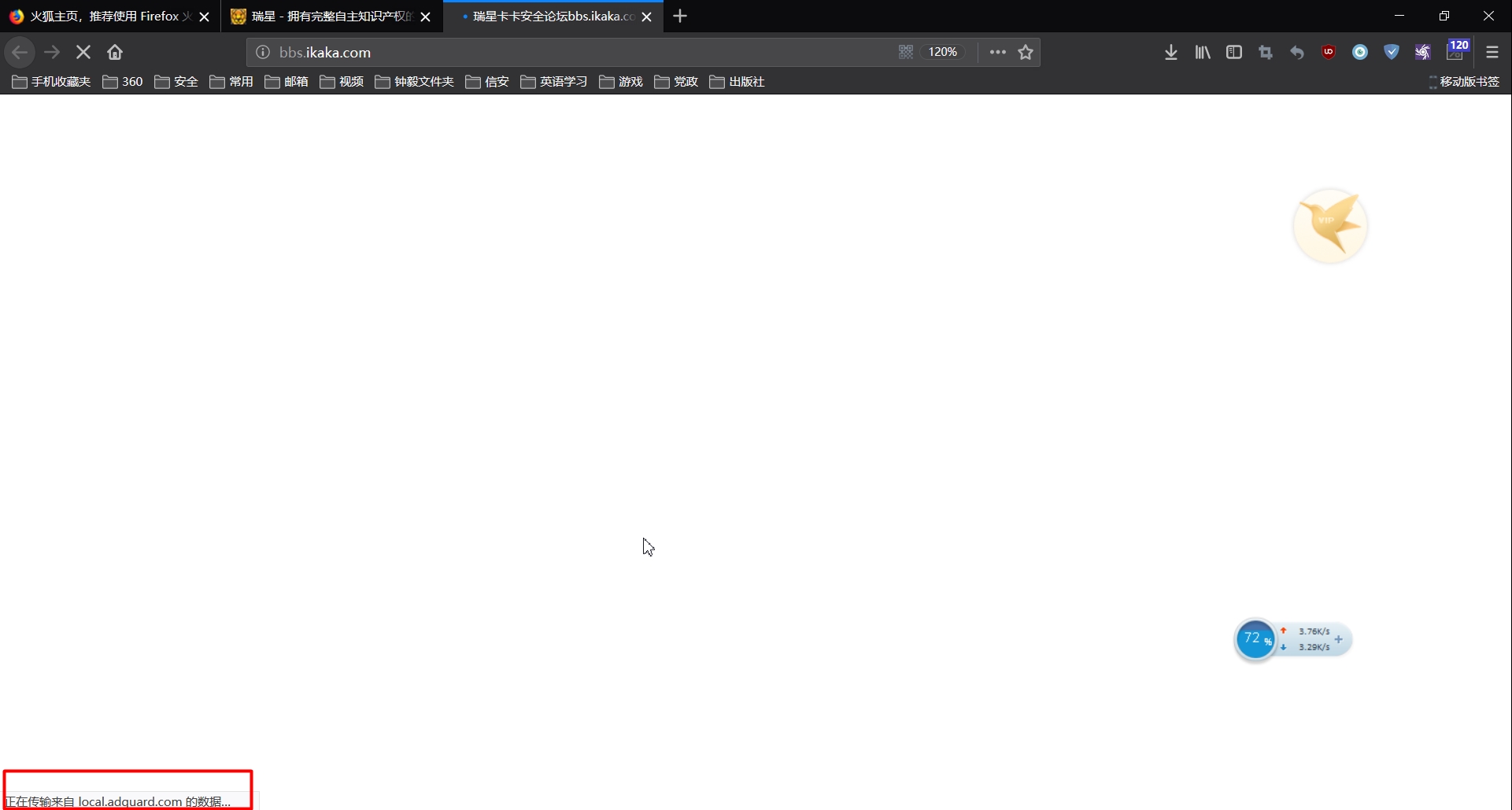 有些网页能正常打开,比如瑞星的官网,但进论坛可能就要卡在local.adguard.com,重新刷新后大部分情况下能打开网页,也有不能打开的情况。