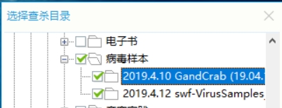 如图,“病毒样本”文件夹下面我解压了两个文件夹,想扫描这两个文件里面的文件,然而扫描时直接把“病毒样本”里所有文件都给扫了。