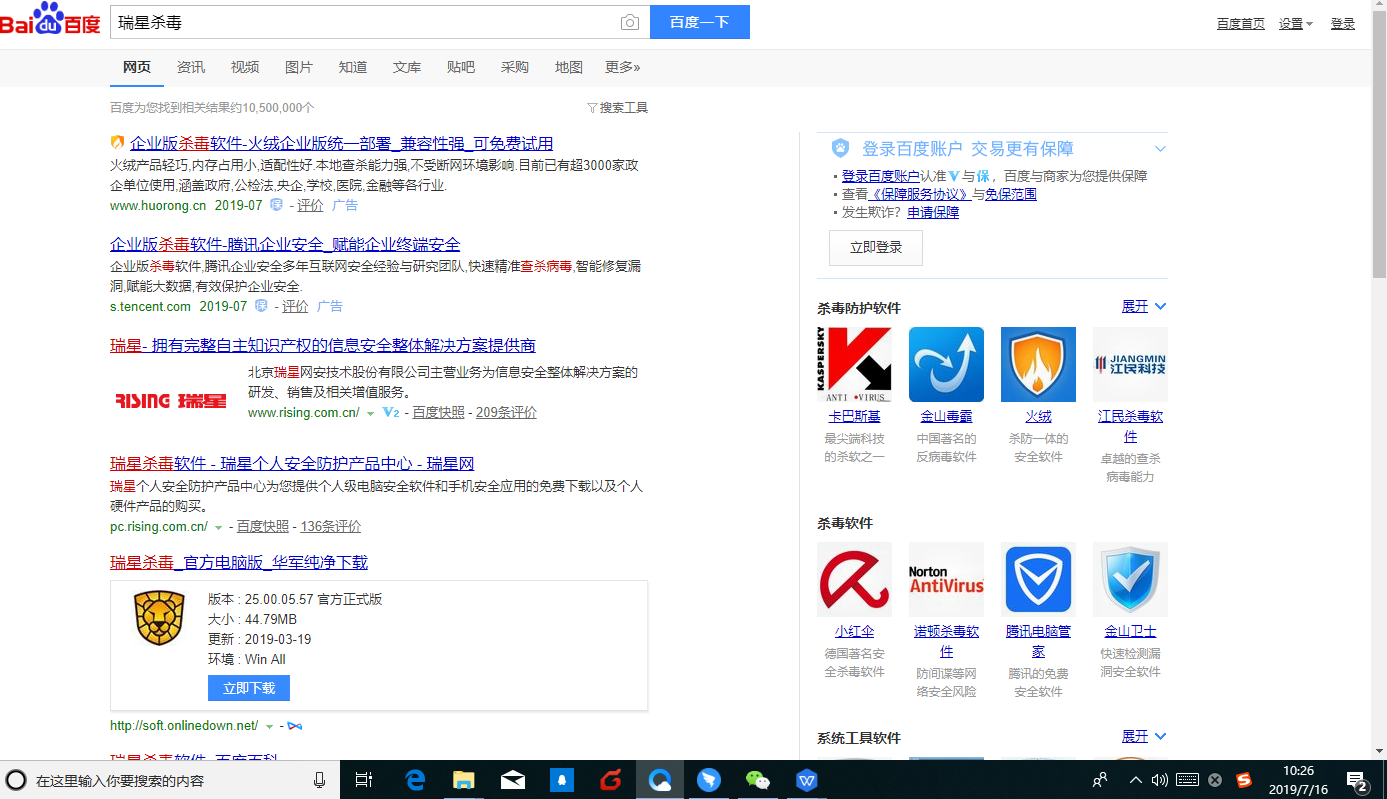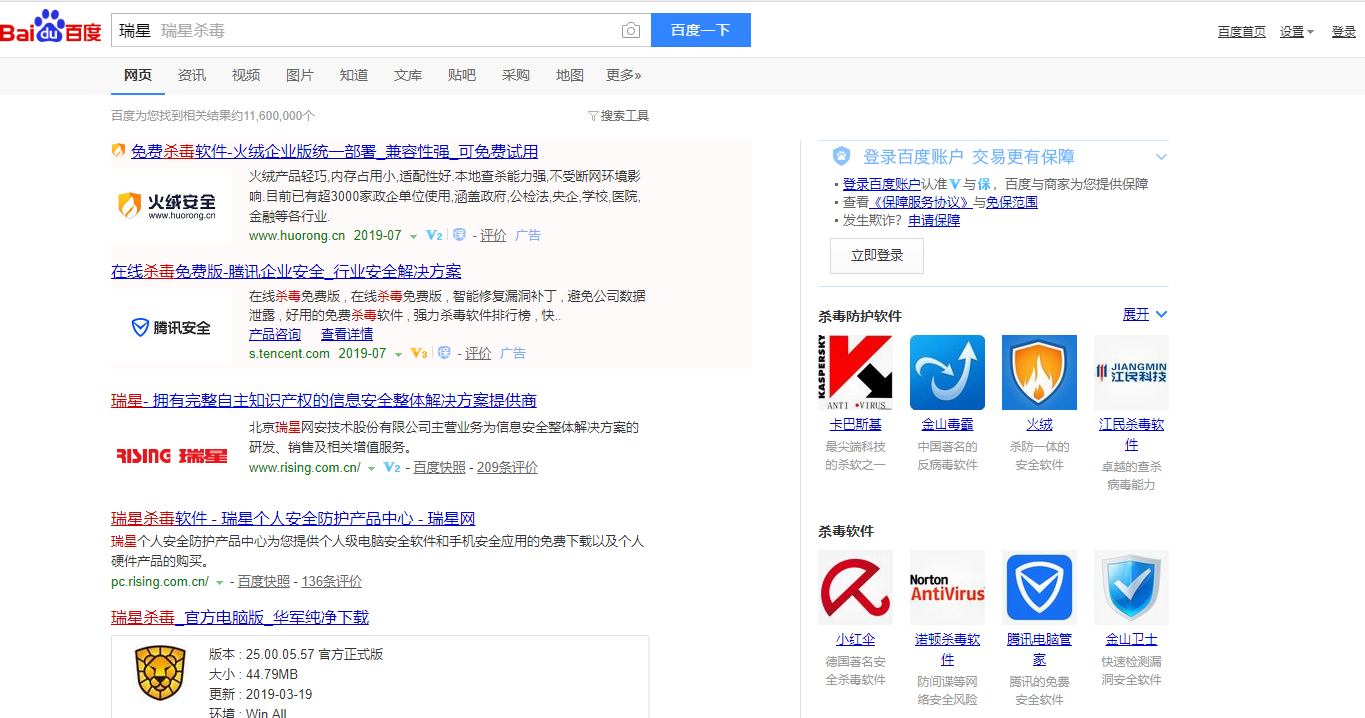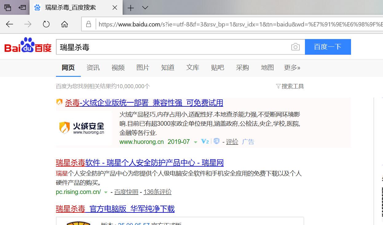 回复:百度里面搜瑞星出来的为啥是火绒??