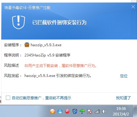 看到好压软件有新的版本更新时,出现拦截的提示。(如图所示)