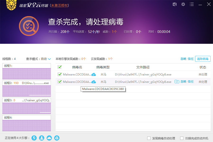 1楼是极其罕见的情况,当未能从云端取到病毒名时暂时这么显示。这个我们很多人也是头一回见,救命稻草 有心了