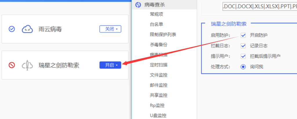 同一个功能,一个设置是开,一个设置是关,这就是问题,而且防护中心开与关与设置中心都是不联动的,不光是这瑞星之剑的问题