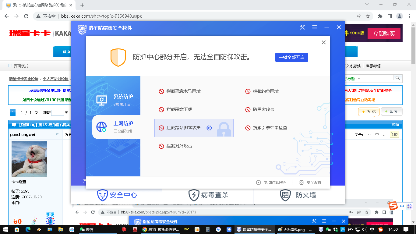 诱发流程: 1.托盘右键,关闭“网络防护”