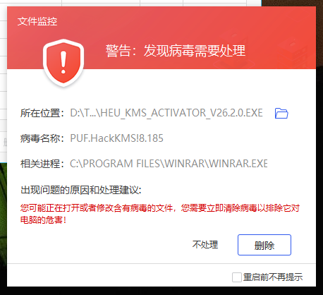 2.不久监控报发现病毒,但点击清除却无法清除;